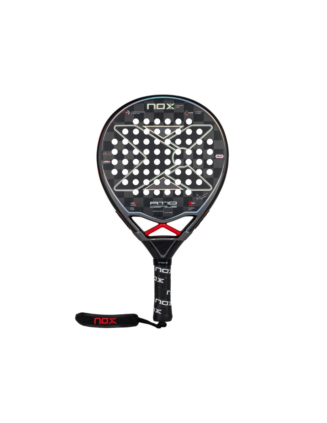 La serie continúa empleando las características que tanto éxito ha dado a sus predecesoras la NOX AT10 Luxury Genius que son la goma en su núcleo HR3 y los planos en carbono 18K en un molde en forma de gota. El uso de esta goma fue el elegido por Agustín Tapia en este modelo para que junto al carbono empleado ofrezca una respuesta a la altura de lo que el jugador espera en esta pala, que es mayor firmeza en el contacto con la pelota, resultando tener un tacto más rígido, pero no por ello menos confortable. Esta dureza en la pala lo que aporta es un gran control y una transferencia total de la fuerza de golpeo, logrando una potencia real y precisión en todos los golpes.