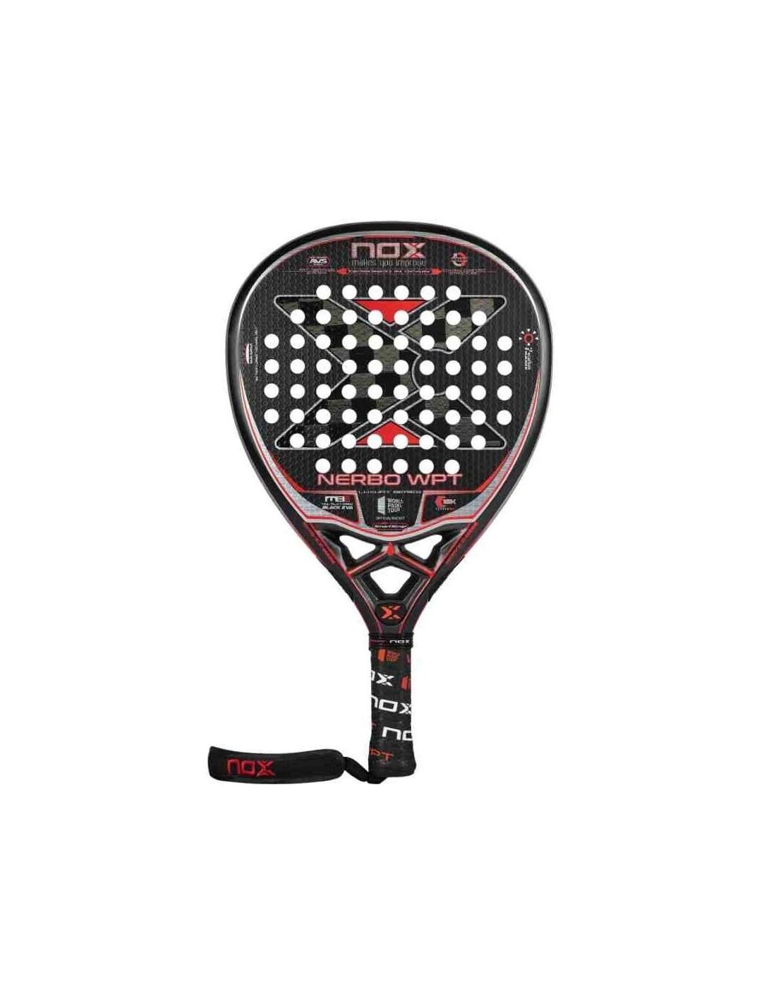 Potente, sólida y rápida,así es el carácter de está NOX, nuevo núcleo Multiayered Black EVA, caras de carbono 18K y el resultado una distribución óptima de la energía y una mejora en el rendimiento.
